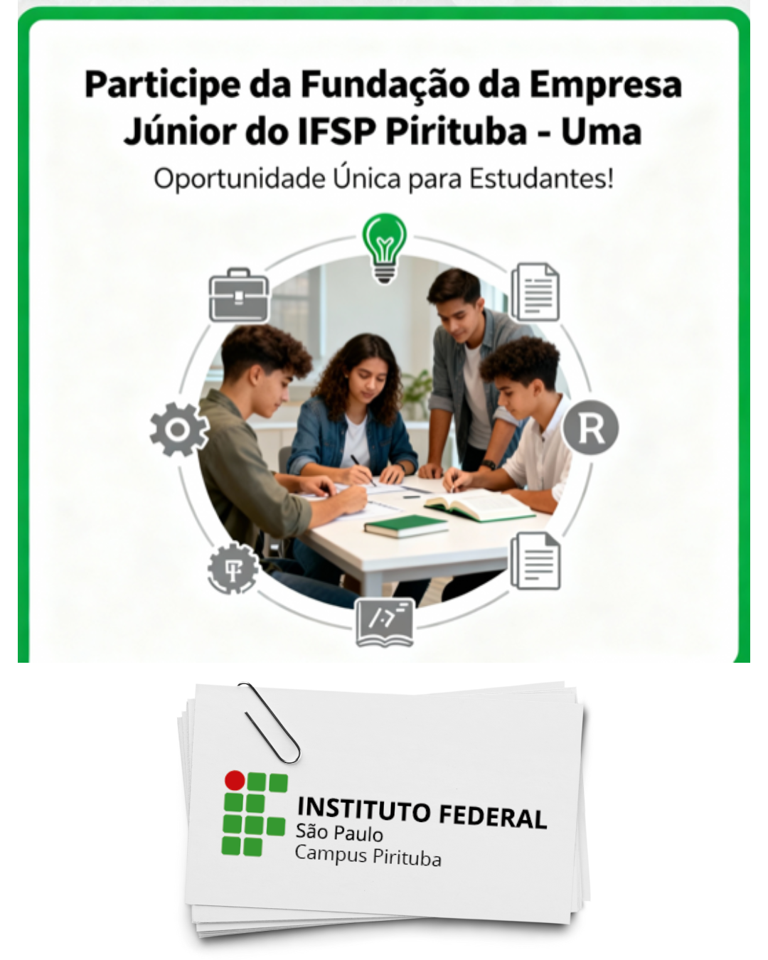 Contamos com o engajamento e o entusiasmo de todos para construirmos uma empresa sólida, inovadora e representativa do IFSP Campus SP Pirituba.