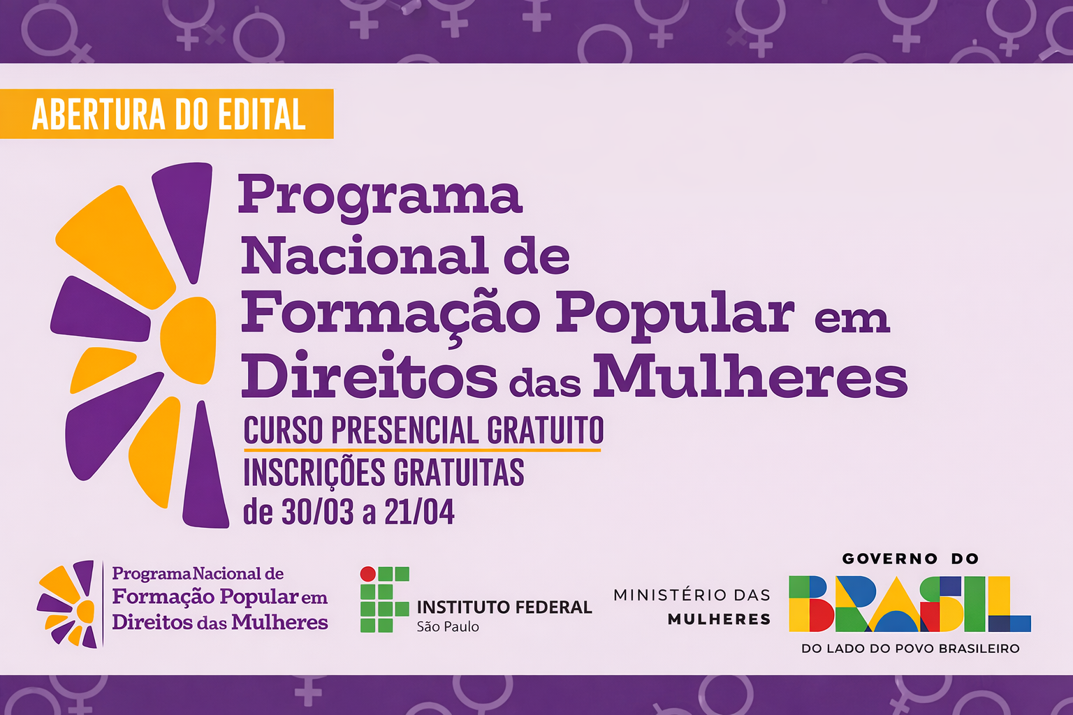 Estão abertas as inscrições para o curso de Formação Popular em Direitos das Mulheres, que faz parte do projeto “Formação e Ação Regional pelo Fim da Violência contra as Mulheres”, alinhado à Política Nacional de Enfrentamento à Violência contra as Mulheres, com recurso proveniente do Ministério das Mulheres e gerenciado pelo Instituto Federal de Educação, Ciência e Tecnologia de São Paulo (IFSP), Campus Hortolândia, e pela Fundação de Apoio Institucional ao Desenvolvimento Científico e Tecnológico (FAI.UFSCar).
