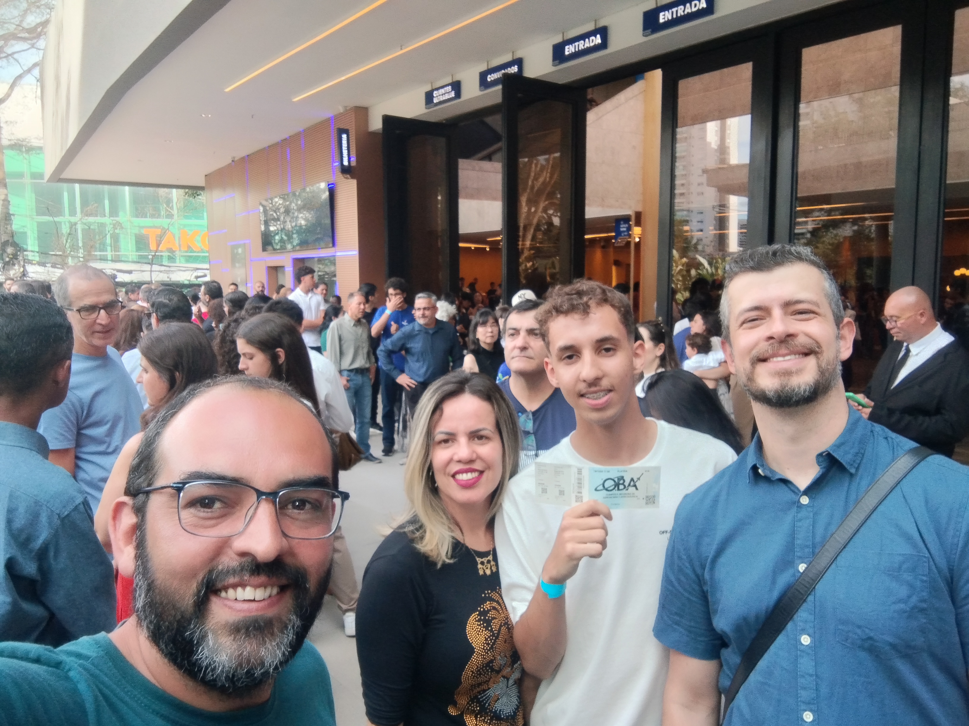 O estudante Bruno esteve presente acompanhado de sua mãe Daniela Lima, do diretor adjunto educacional, Filipe Ferreira e do professor Renato Pugliese, grande incentivador e orientador de estudantes do IFSP Pirituba interessados em participar da OBA.